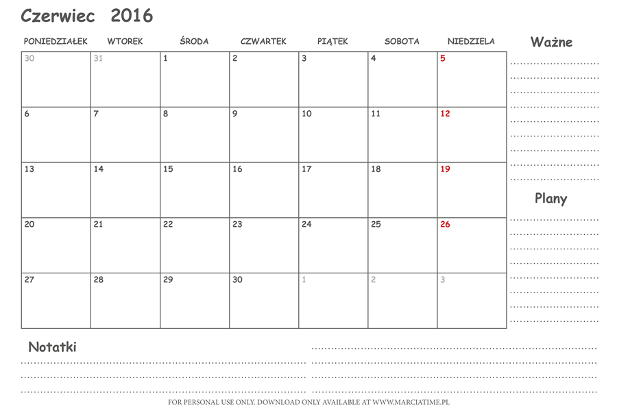 Jeszcze kilka dni i przełożymy kolejną kartkę w kalendarzu. Czerwiec przed nami, dlatego też umieszczam kolejny planer. Maj zleciał bardzo szybko. Na szczęście zdążyliśmy już poczuć kilka dni prawdziwego lata, które bardzo drastycznie przełamane zostały jesienną pogodą. Miejmy jednak nadzieję, że najzimniejsze dni są już za nami. Czerwiec zbliża się wielkimi krokami, a wraz z nim upragnione dla wielu wakacje, a to bardzo dobry czas aby zrealizować wszystkie plany, na które nie mamy czasu na co dzień.